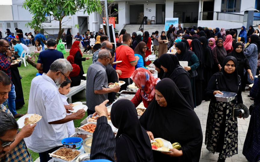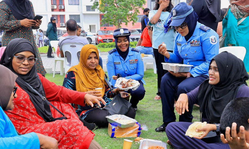 ހިޔާ ފްލެޓުތަކުގައި އުޅޭ މީހުންނާ އެކު ފުލުހުން ބޭއްވި ކެއުމުގެ ތެރެއިން -- ފޮޓޯ/ ޕޮލިސް