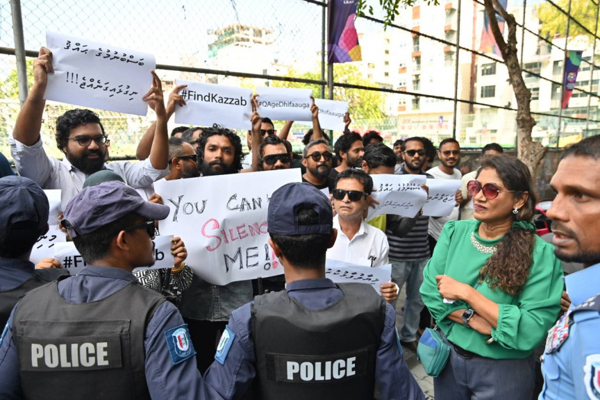 "ބަސް ބުނުމާ ގަލަމުގެ މިނިވަންކަމަށް އަރައިގަންނަތަން ފެނިގެންމިދިޔައީ. މިއަދު އަޅުގަނޑުމެންގެ ފުރަތަމަ އެކްޓިވިސްޓް މި ގެނައީ. އެބޭފުޅުން ހީކުރަނީ ކަންނޭނގެ އަޅުގަނޑުމެން ފަހަތަށް ޖެހޭނެއޭ ބިރުގަންނާނެއޭ. އެމްޑީޕީއަކީ އެއްވެސް އިރެއްގައި މިކަހަލަ ކަންތައްތަކުގައި ފަހަތަށް ވެސް ޖެހުނު ބައެއް ނޫން،" އޭނާ އިތުރަށް ވިދާޅުވިއެވެ.