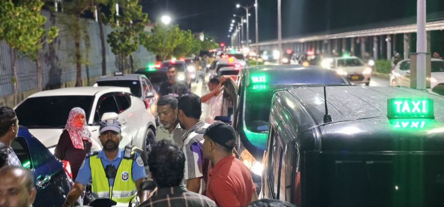 ހުޅުމާލޭގައި މިހާރު ކުރިއަށްދާ ޓެކްސީ ޑްރައިވަރުންގެ އިހުތިޖާޖު ހޫނުވެ، ބައެއް މީހުން ބެލުމުގެ ދަށަށް ގެންގޮސް، އެއްބާރުލުން ނުދޭ ކާރު ޑްރައިވަރުންގެ ކާރުތައް ޓޯކުރާނެކަމުގެ އިންޒާރު ފުލުހުން ދީފިއެވެ.