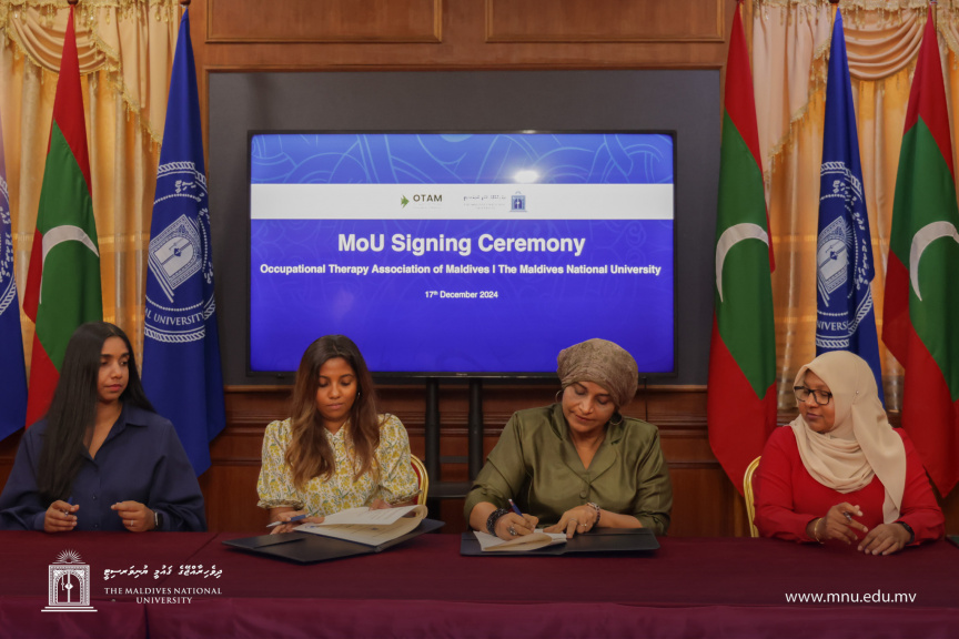 ގައުމީ ޔުނިވާސިޓީ އެމްއެންޔޫއާއި އޮކިއުޕޭޝަނަލް ތެރަޕީ އެސޯސިއޭޝަން މޯލްޑިވްސް ގުޅިގެން ގައުމަށް ބޭނުންވާ ތެރަޕިސްޓުން ތަމްރީނުކުރުމަށް އެއްބަސްވުމެއްގައި ސޮއިކޮށްފިއެވެ.