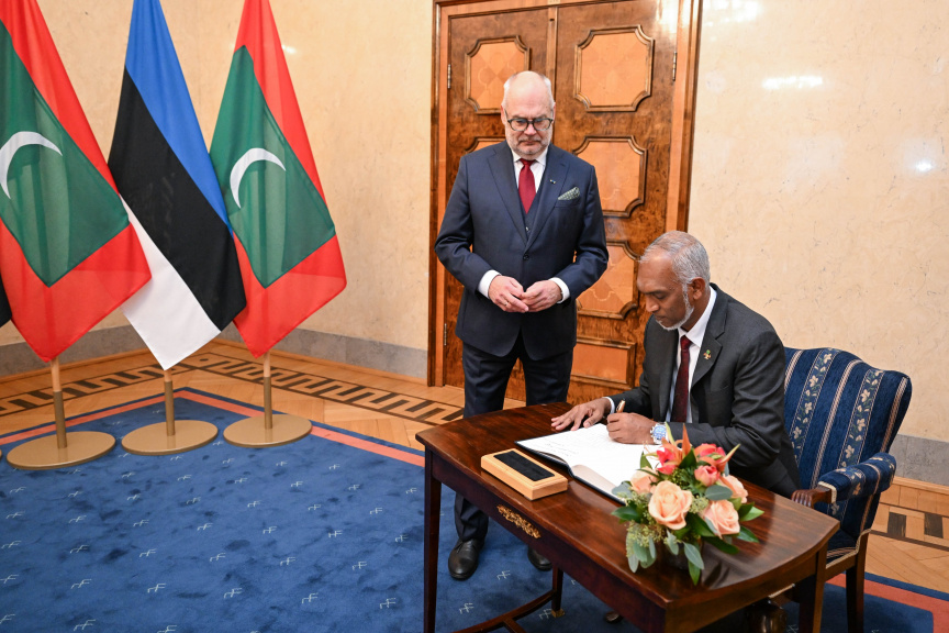 ރައީސް މުއިއްޒާއި ސަރުކާރުގެ ވަފުދެއް އެސްޓޯނިޔާއަށް ވަޑައިގަތީ، އެ ގައުމުގެ ރައީސްގެ ދައުވަތަކަށެވެ.