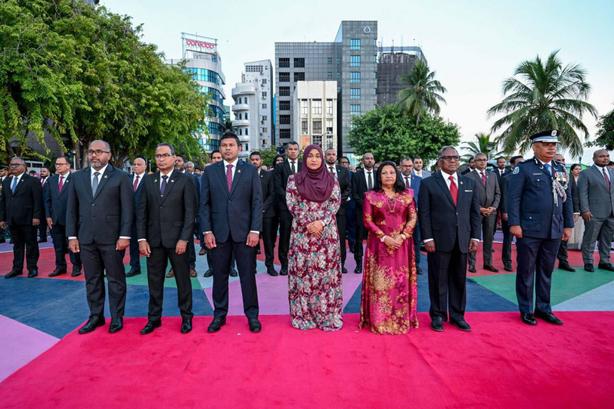 ޤައުމީ ދުވަހުގެ ދިދަނެގުމުގެ ޚާއްޞަ އިޙްތިފާލުގައި ރައީސް މުއިއްޒާއި އެ މަނިކުފާނުގެ އަނބިކަނބަލުން ސާޖިދާ މުޙައްމަދު ބައިވެރިވެވަޑައިގަތެވެ. ގައުމީ ދުވަހާ ގުޅިގެން ބޭއްވި ދިދަ ނެގުމުގެ ޚާއްޞަ ރަސްމިއްޔާތު އޮތީ މިއަދު ހެނދުނު 6:00 ގައި ޖުމްހޫރީ މައިދާނުގައެވެ.