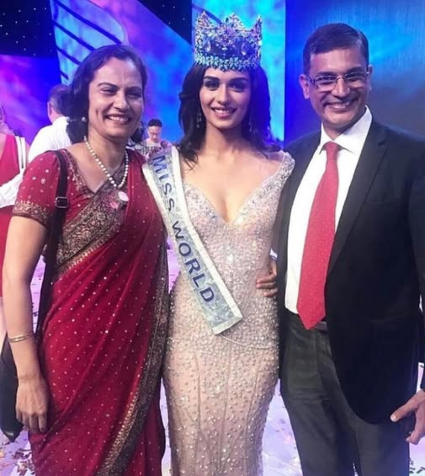 މަނޫޝީ ބަތަލާގެ މައިންބަފައިންނާ އެކު މިސް ވޯލްޑް ތާޖު ހާސިލުކުރި ހަފްލާގައި--ފޮޓޯ/ފިލްމުފެއަ