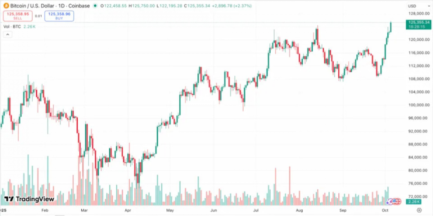ދުނިޔޭގެ އެންމެ ބޮޑު ކްރިޕްޓޯކަރަންސީ ކަމަށްވާ ބިޓްކޮއިންގެ އަގު، 125,000 ޑޮލަރު ހުރަސްކޮށް، އާ ރިކޯޑެއް ގާއިމުކޮށްފިއެވެ.