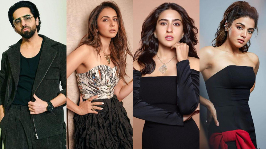 ފިލްމު "ޕަތީ ޕަތުނީ އޯރް ވޯ 2"ގެ ލީޑް ތަރިން ކަމަށްވާ ވަމީގާ ގައްީ، ސާރާ އަލީ ޚާން، ރަކުލް ޕްރީތް ސިންގް އަދި އަޔުޝްމާން ކުރާނާ--ފޮޓޯ/އިންޑިއާފޯރަމް