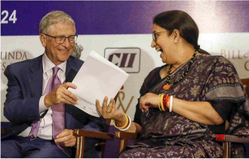 ބިލް ގޭޓްސް އާއި ސްމިރްތީ އިރާނީ މިދިޔަ އަހަރު ދިއްލީގައި ބޭއްވި އޭލިއަންސް ފޯ ގްލޯބަލް ގުޑް އޮން ޖެންޑަ އީކުއިޓީ އެންޑް އީކުއަލިޓީ އިވެންޓުގައި--ފޮޓޯ/އެންޑީޓީވީ