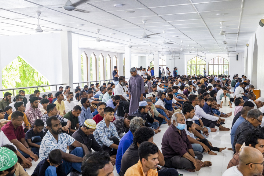 އިސްލާމީ މަރުކަޒުގައި ގިނަ ބަޔަކު ހުކުރު ޚުތުބާ އަޑުއަހަނީ -- ފޮޓޯ/ އިސްލާމިކް މިނިސްޓްރީ