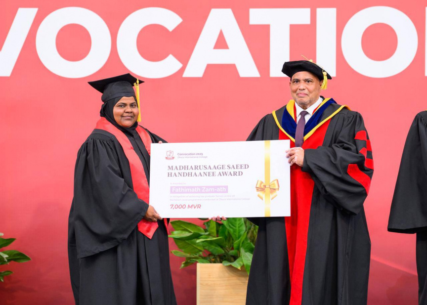 ޒިކުރާ އިންޓަނޭޝަނަލް ކޮލެޖުން ދަސްވެނިވި ދަރިވަރަކަށް އެވޯޑު ދެއްވުން---ފޮޓޯ: ޒިކުރާ އިންޓަނޭޝަނަލް ކޮލެޖު
