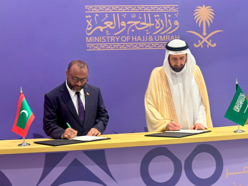ހައްޖުގެ ޚިދުމަތާ ބެހޭ އެއްބަސްވުމުގައި ސޮއިކުރަނީ -- ފޮޓޯ/ އިސްލާމިކް މިނިސްޓްރީ