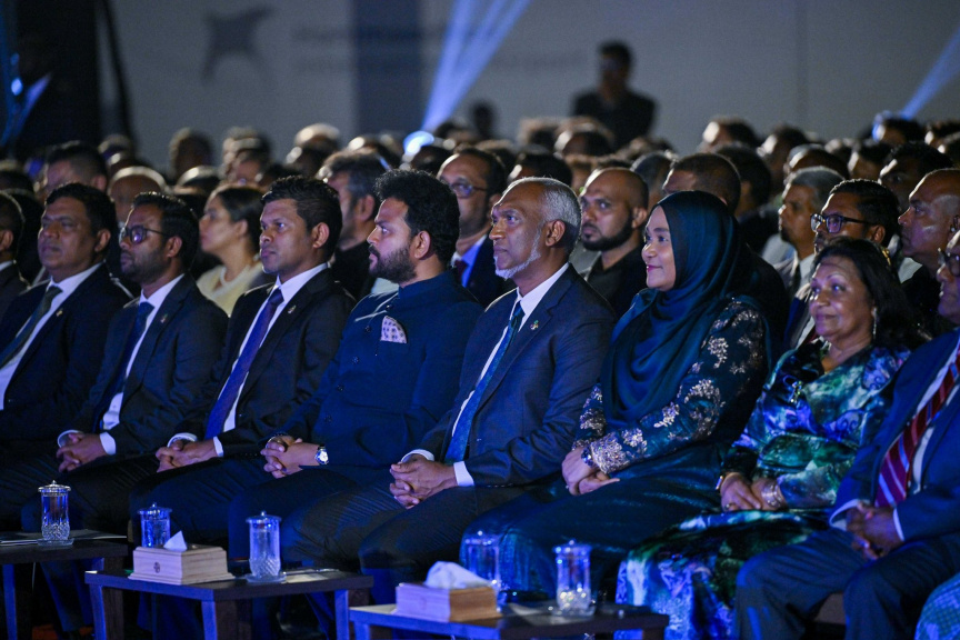 ހަނިމާދޫ އެއާޕޯޓު ހުޅުވުމުގެ ރަސްމިއްޔާތުގައި ރައީސްގެ ދެކަނބަލުން: އެ މަނިކުފާނު ވިދާޅުވީ، ހަނިމާދޫ އެއާޕޯޓަކީ ދިވެހި ވިޔަފާރިވެރިންނަށް ރަނުގެ ފުރުސަތެއް ކަމަށްް --- ފޮޓޯ: ރައީސް އޮފީސް