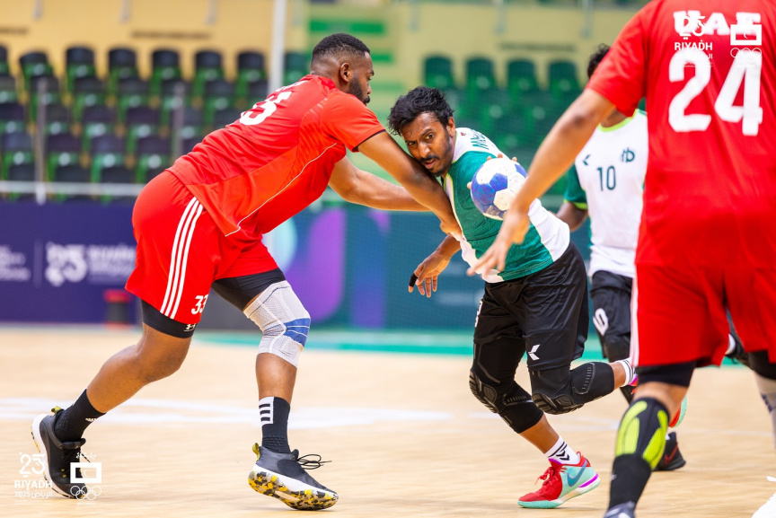 ރާއްޖެއާއި ޔޫއޭއީ ބައްދަލުކުރި ހޭންޑްބޯޅަ މެޗުގެ ތެރެއިން-- ފޮޓޯ: އެމްއޯސީ