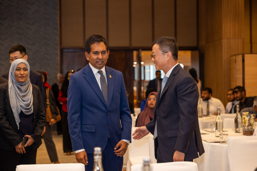 ޗައިނާ ސަފީރު ކޮންގް ޝިންހުއާ "މީޑިއަމް އެންޑް ލޯންގް-ޓާމް ޑިވެލޮޕްމެންޓު ޕްލޭނިންގް: ކީ ޓު ނޭޝަނަލް މޮޑަނައިޒޭޝަން" ސެމިނާގައި ----ފޮޓޯ: ސަން/ އަޙްމަދު ފިރްޔާލް