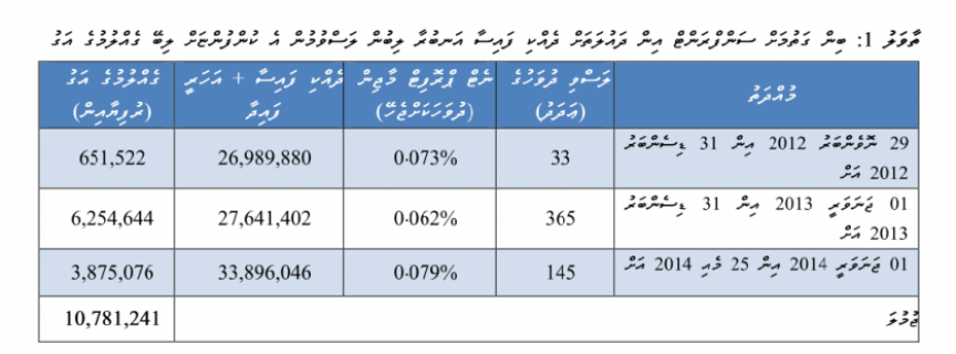 އެގޮތުން ނޮވެމްބަރު 29، 2012އިން ފެށިގެން އެ އަހަރުގެ ޑިސެމްބަރުގެ ނިޔަލަށް 651،522 ރުފިޔާގެ ގެއްލުމެއް ވެފައިވާއިރު، 2013ވަނަ އަހަރު 6.25 މިލިއަން ރުފިޔާ، އަދި ޖެނުއަރީ 1، 2014އިން އެ އަހަރުގެ މޭ 25 އަށް 3.86 މިލިއަން ރުފިޔާގެ ގެއްލުމެއް ވެފައިވާ ކަމަށް، އޮޑިޓް ރިޕޯޓުގައި ބަޔާންކޮށްފައިވެއެވެ.