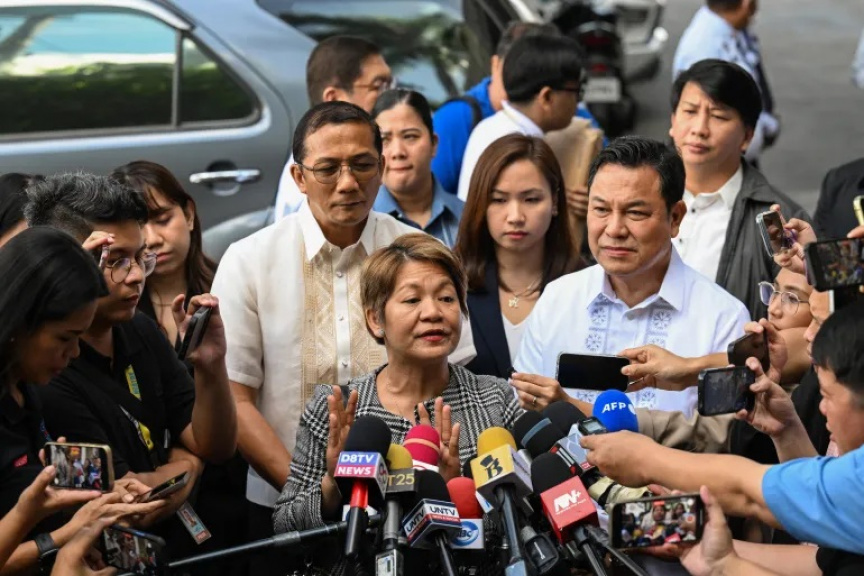 ފިލިޕީންސްގެ ސްޓޭޓް ޕްރޮސެކިއުޓަރު އޮލިވިއާ ޓޮރެވިލާސް، ގުއޯގެ ހުކުމާއި ހުކުމް އިއްވުމަށް ފަހު މީޑިއާއާ ވާހަކަ ދައްކަވަނީ. ފޮޓޯ/އޭއެފްޕީ