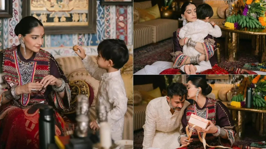 ބަތަލާ ސޯނަމް ކަޕޫރު ފިރިމީހާ އާނަންދު އަހޫޖާ އަދި ދަރިފުޅު ވަޔޫއާ އެކު--ފޮޓޯ/އިންސްޓަގްރާމް