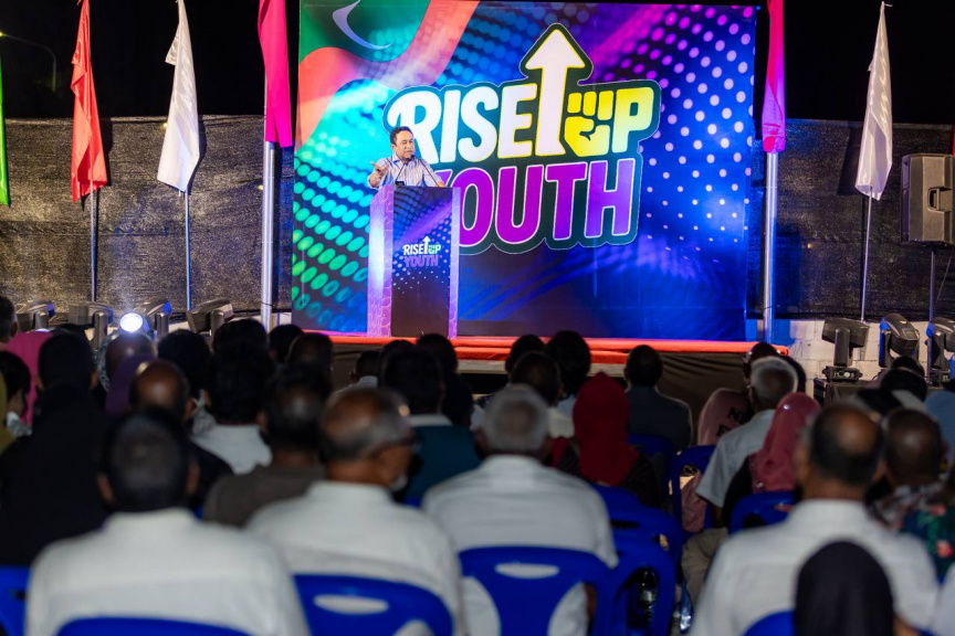 21 ނޮވެމްބަރު 2025: ރައިޒް އަޕް ޔޫތުގެ ނަމުގައި ޕީއެންއެފުން ހުޅުމާލެ ފޭސް ދޭއްގައި ބޭއްވި ޖަލްސާގައި ކުރީގެ ރައީސް ޔާމީން -- ސަން ފޮޓޯ: މޫސާ ނަދީމް
