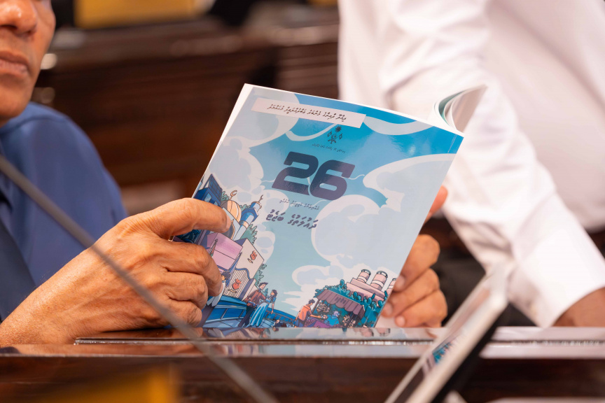 މަޖިލީހުގެ މެންބަރަކު ބަޖެޓު ފޮތް ކިޔަނީ: ކޮމިޓީން 64 ބިލިއަންގެ ބަޖެޓު ފާސްކުރީ ބަދަލަކާނުލާ --- ފޮޓޯ/ މަޖިލިސް