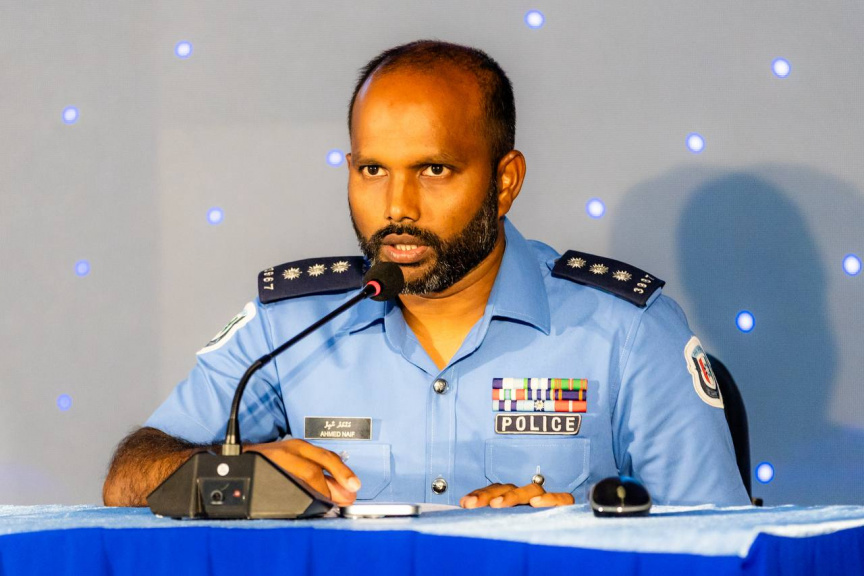 ޗީފް އިންސްޕެކްޓާ އޮފް ޕޮލިސް އަހުމަދު ނާއިފް ނޫސްވެރިންނަށް މައުލޫމާތު ދެއްވަނީ --- ސަން ފޮޓޯ/ މޫސާ ނަދީމް