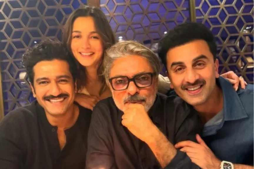 ފިލްމު "ލަވް އެންޑް ވޯ"ގެ ކާސްޓުން ޑައިރެކްޓަރު ސަންޖޭ ލީލާ ބަންސާލީއާ އެކު--ފޮޓޯ/ބޮލީވުޑްހަންގާމާ