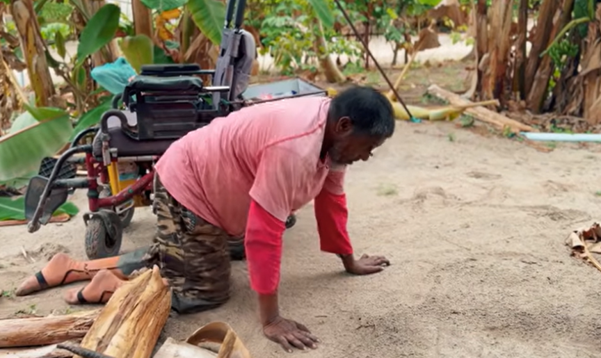 ކުރިން ނަމަ، އެހެން މީހެއްގެ އެހީއާ ނުލާ އެއްކަމެއް ވެސް ނުކުރެވެއެވެ. މިހާރު ޅަފުރައިގެ ބޮޑެތިވާ ކުޑަކުދިން ގޮތަށް ދެއަތާއި ދެފައި ޖައްސައިގެން ފިރުކިފައި އޭނާއަށް އުޅެވެއެވެ. ނުވަތަ ހަތަރު މޮއްގަނޑު ޖަހައިގެން އޭނާއަށް އުޅެވެއެވެ. މާބޮޑަށް ވަރުބަލި ނުވާނަމަ، އަމިއްލައަށް ވެސް ގޮނޑިއަށް އަރައެވެ. އެވަގުތު ދެ ފައިގައި ކުޑަ ތުރުތުރު އެޅުމެއް ހުރެއެވެ. ޒަރީރު ގަބޫލުކުރި ގޮތުގައި، އެއީ ވެސް އޭނާއަށް ލެއްވި ރަހުމަތެކެވެ. އެނބުރި، މަސައްކަތަށް އައުމުގެ ރޫހު އޭނާގެ އާލަވިއެވެ.