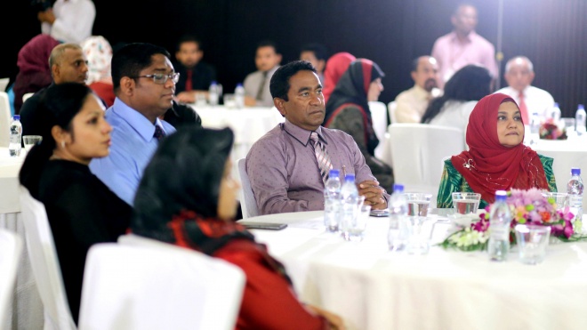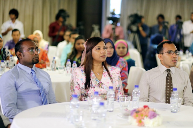 "އަހަން" ކެމްޕެއިން އިފްތިތާހުކުރުމަށް ބޭއްވި ހަފްލާގައި ސަރުކާރުގެ ބައެއް ވަޒީރުން: ސަން ފޮޓޯ/ ފަޔާޒު މޫސާ