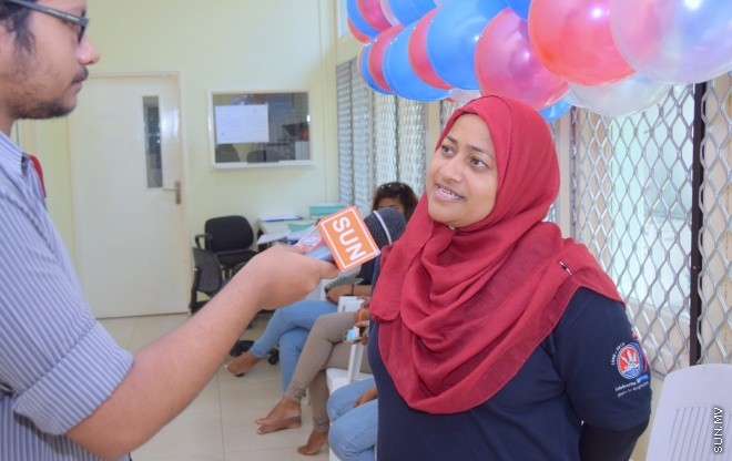 އިވެންޓް އިންތިޒާމްކުރާ ސުޓިއަރިން ކޮމިޓީގެ މެންބަރު އައްޒަ ހަމީދު "ސަން" އަށް އިންޓަވިއު ދެއްވަނީ: ސަން ފޮޓޯ/ ޔޫސުފް ސޮފްވާން