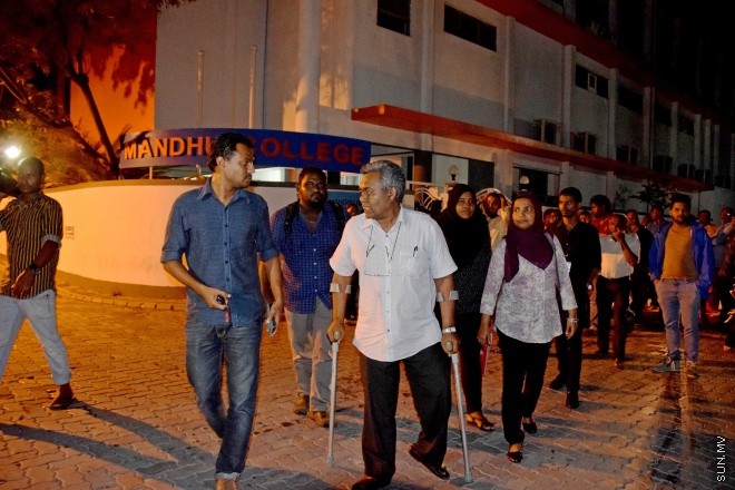 އެޑިއުކޭޝަން މިނިސްޓްރީގެ އޮފިޝަލުންނާއެކު ފުލުހުން މަންދު ކޮލެޖްގެ އިމާރާތް ކައިރީގައި މިރޭ ހަރަކާތްތެރިވެފައިވާއިރު، މަންދު ކޮލެޖްގެ ޗެއާމަން އިބްރާހިމް އިސްމާއިލް (އިބުރާ) ވިދާޅުވީ ކޯޓުއަމުރެއް ނެތި ފުލުހުންނަށް އެތަނަށް ނުވަދެވޭނެ ކަމަށެވެ.