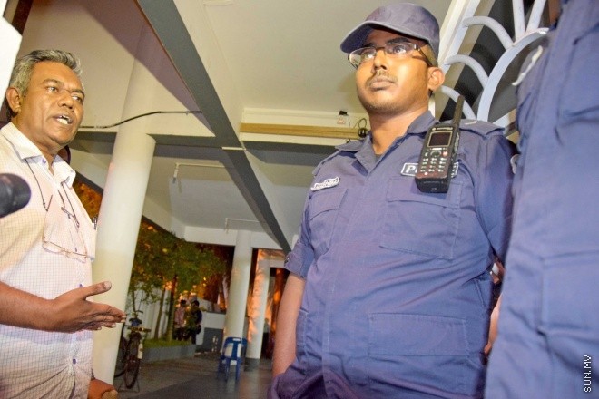 ފުލުހުންނާ މުޚާތަބުކޮށް މަންދުކޮލެޖްގެ ޗެއާމަން އިބްރާ ވާހަކަފުޅުދައްކަވަނީ ---- ސަން ފޮޓޯ/ ޔޫސުފް ސޮފްވާން