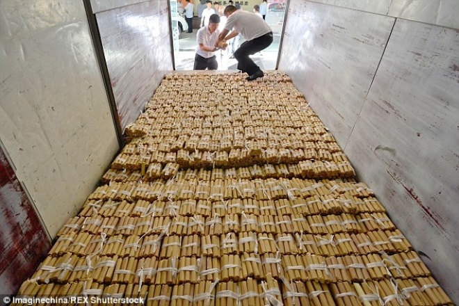 ޗައިނާގެ އުތުރުއިރުމަތީގައި އޮންނަ ލިއައުނިންގް ޕްރޮވިންސްގެ ގޭން ނަމަކަށް ކިޔާ އެ މީހާ ގަތް ކާރުގެ އަގަކީ 680,000 ޔުއާން (109 ހާސް ޑޮލަރު) އެވެ. ކާރު ގަތުމަށް 660،000 ޔުއާން (106 ހާސް އެމެރިކާ ޑޮލަރު) އޭނާ ދައްކާފައިވަނީ ވަކި ލާރިންނެވެ. ބާކީ 2000 ޔުއާން (322 ޑޮލަރު) ދެއްކީ 1 ޔުއާންގެ ކަރުދާސް ނޫޓުންނެވެ.