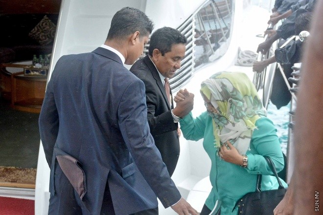 ރައީސް ޔާމީންގެ އިސްތިގުބާލުގައި އެއާޕޯޓަށް ވަޑައިގެންނެވި ބޭފުޅުންގެ ތެރޭގައި ނައިބު ރައީސް އަހުމަދު އަދީބުގެ އިތުރުން ފިޝަރީޒް މިނިސްޓަރު ޑރ. މުހައްމަދު ޝައިނީ އަދި ރައީސް އޮފީހުގެ މިނިސްޓަރު މުހައްމަދު ހުސައިން ޝަރީފު ހިމެނި ވަޑައިންނަވަ އެވެ.