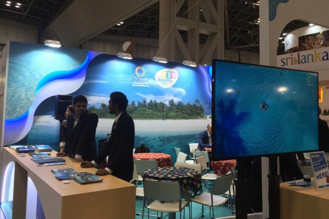 "ޖާޓާ ޓޫރިޒަމް އެކްސްޕޯ 2015"ގައި ބަހައްޓާފައިވާ ދިވެހިރާއްޖޭގެ ސްޓޭންޑް -- ފޮޓޯ: އެމްއެމްޕީއާރުސީ