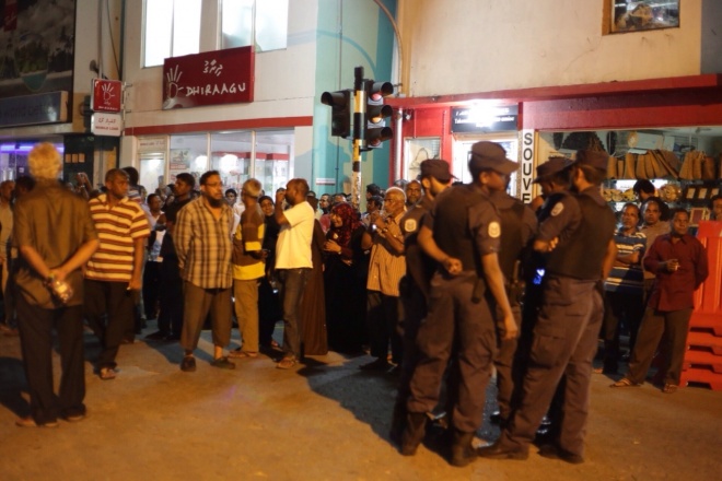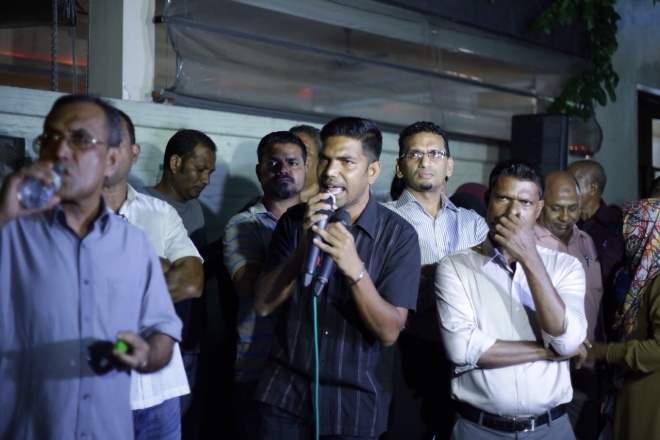ނަޝީދު ދޫކޮށްލަން ގޮވާލައި އެމްޑީޕީން މިރޭ ސީގަލް ކަންމަތީގައި ބޭއްވި އެއްވުމުގެ ތެރެއިން-- ސަން ފޮޓޯ / ފަޔާޒު މޫސާ