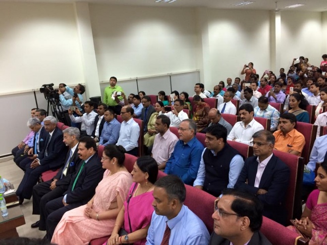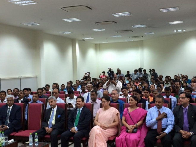 އިންޑިއާގެ އެކްސްޓާނަލް ސުޝްމާ ސުވަރާޖްގައި ރާއްޖޭގައި ތިބޭ އިންޑިއާ ރައްޔިތުންނާ ބައްދަލުކުރެއްވުމަށް ބޭއްވި ހަފުލާގައި ސަފީރު ރާޖީވް ޝަހާރޭއާއި އިންޑިއާގެ ބައެެއް ރައްޔިތުން. ފޮޓޯ: އިންޑިއާ ހައިކޮމިޝަން.