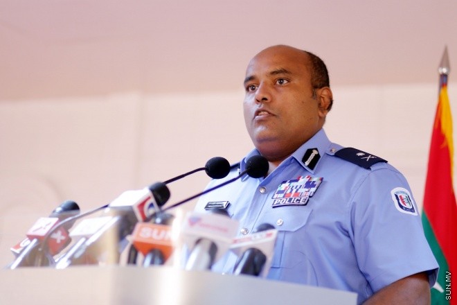 ޕްރެސް ކޮންފަރެންސް ދެއްވަނީ ފުލުހުންގެ ސްޕޯކްސްޕާސަން އެސިސްޓެންޓް ކޮމިޝަނާ އަބްދުﷲ ނަވާޒު.