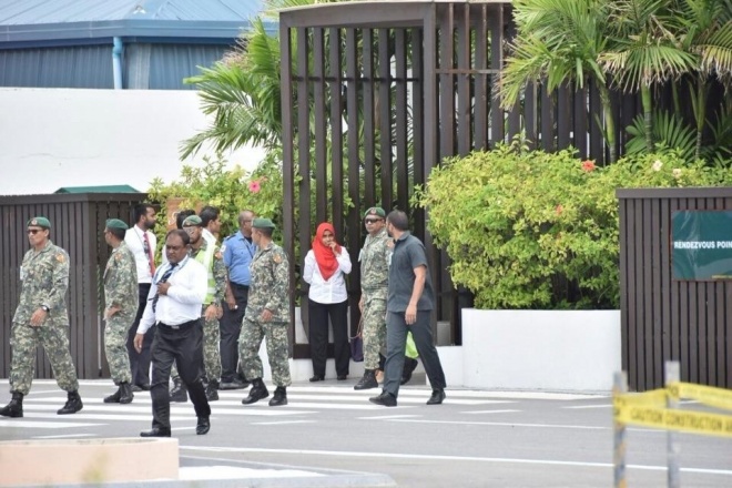 ރާއްޖޭގެ ނާއިބު ރައީސް އަހުމަދު އަދީބު ރާއްޖެ ވަޑައިގެން މާލެ ވަޑައިގަންނަވާ އިރަށް ރަސްމީ ފާލަން ހިމެނޭ، ގްރީން ޒޯން ބަންދުކޮށް ސަލާމަތީކަންކަން ވަރުގަދަކޮށްފި އެވެ.