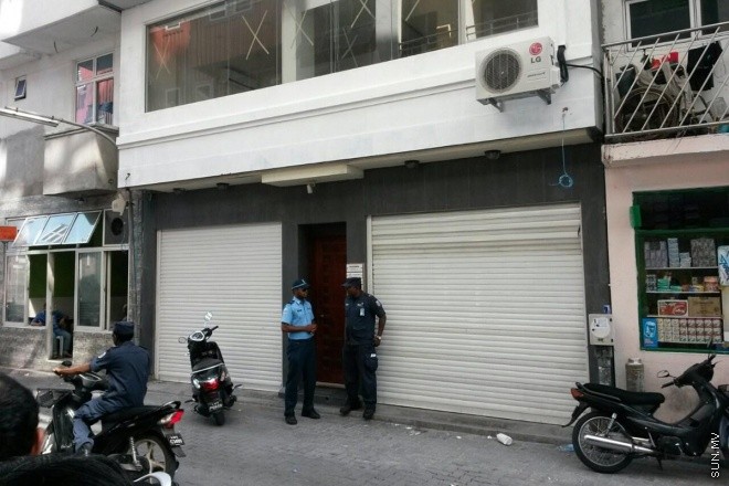 ކޯޓުއަމުރެއްގެ ދަށުން މ. ސެސްނާ ކިޔާ ގެއެއް ފުލުހުންނާއި ސިފައިން ބަލައި ފާސްކުރަމުން އެބަދޭ. 8 ބުރީގެ އެ އިމާރާތަކީ އަމިއްލަ ބައެއް ފަރާތްތަކުގެ އޮފީސްތަކުގެ އިތުރުން، އާންމުގެ ބަޔަކު ދިރިއުޅޭ ގެއެއް.