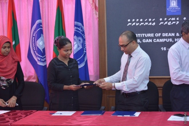 އެބޭފުޅުންނާއެކު ވަޒީފާގެ އެއްބަސްވުމުގައި ސޮއިކުރައްވައި ރަސްމީކޮށް މަގާމް ހަވާލުކޮށްދެއްވީ ގައުމީ ޔުނިވާސިޓީގެ ވައިސް ޗާންސެލަރު ޑރ. އަލީ ފަވާޒު ޝަރީފާއި ޑެޕިއުޓީ ވައިސް ޗާންސެލަރު ޑރ. މުއާވިޔަތު މުހައްމަދެވެ.