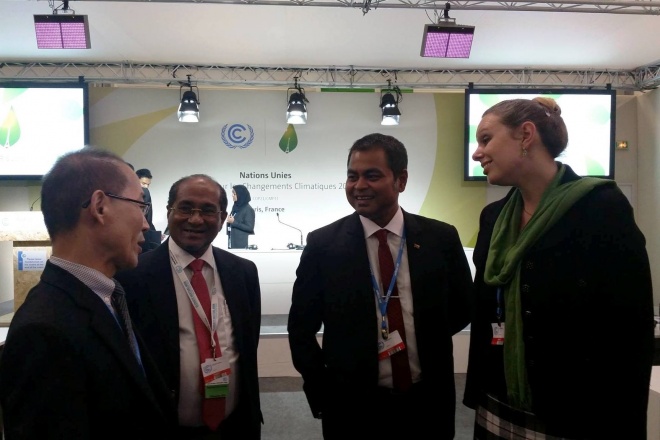 އެންވަޔަރަންމެންޓް މިނިސްޓަރު ތާރިގު އިބްރާހިމް އެހެން ވިދާޅުވީ ޕެރިހުގައި ކުރިއަށްދާ "ކޮޕް 21"ގެ ހަވާސާގައި ރާއްޖޭގެ ފަރާތުން ބޭއްވި ރަސްމިއްޔާތެއްގައި ވާހަކަފުޅު ދައްކަވަމުންނެވެ.