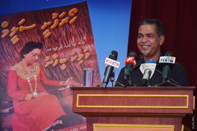 ޑިސެމްބަރު 7، 2015: ހޯރަފުށީ ސަލީމްގެ ވާހަކަ "މަލިކު ބީފާނު" ފޮތް ނެރުމަށް އިމާދުއްދީން ސްކޫލް ހޯލުގައި ބޭއްވި ހަފްލާގެ ތެރެއިން -- ސަން ފޮޓޯ/ފަޔާޒު މޫސާ