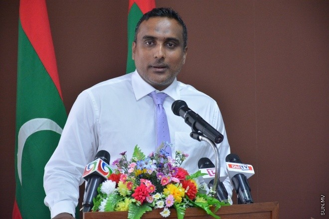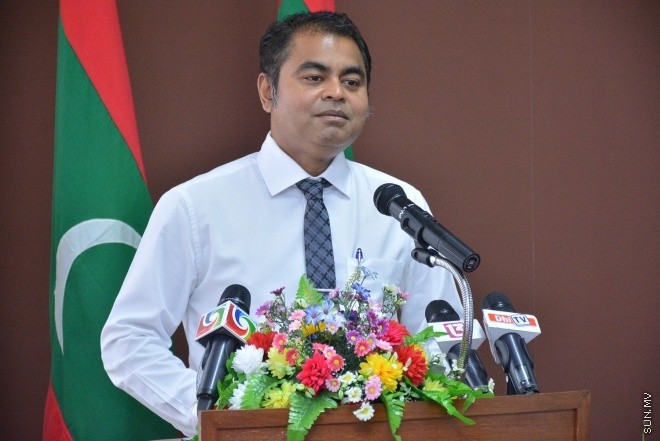 މިއަދުގެ ރަސްމިއްޔާތުގައި މިނސްޓަރު ޠާރިގް ވާހަކަ ދައްކަވަނީ ---- ސަން ފޮޓޯ/ އަހުމަދު ޝަރުވާން