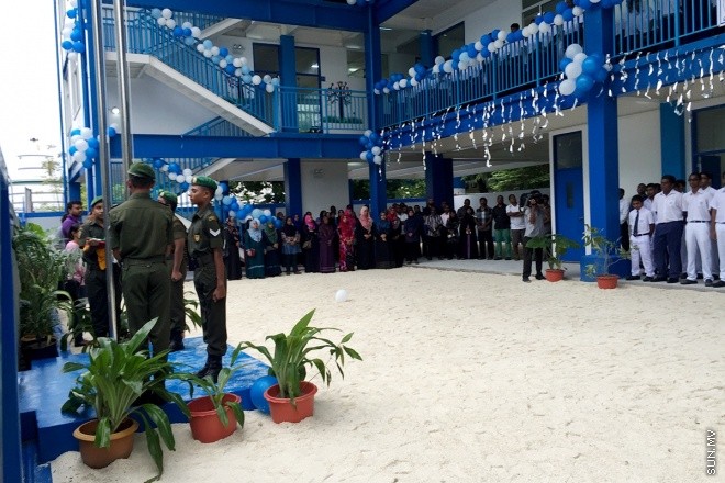 ދަރުމަވަންތަ ސްކޫލްގައި ދިރާސީ އާ އަހަރު 2016ގެ ކިޔެވުން ފެށުމަށް ހެނދުނު ބޭއްވި ހާއްސަ އެސެމްބްލީ -- ސަން ފޮޓޯ: އަހްމަދު މުޖްތަބާ