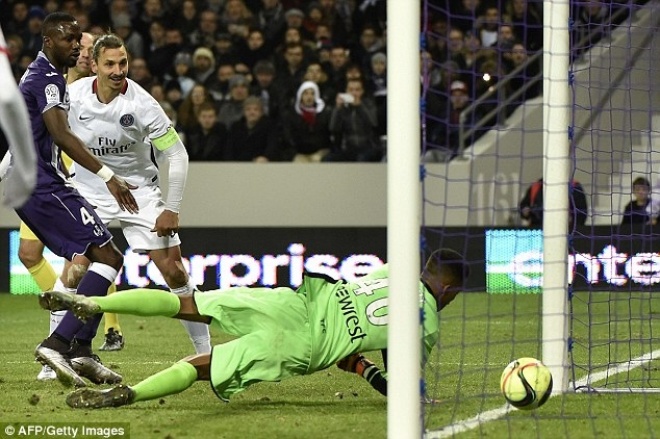 ފްރާންސް ލީގްގައި ޓުލޫސް އާއި ޕީއެސްޖީ ކުޅުނު މެޗުގައި ފެނިގެންދިޔަ ހަމައެކަނި ގޯލު އިބްރަހިމޮވިޗް ކާމިޔާބް ކުރަނީ --- ފޮޓޯ: ޑެއިލީ މެއިލް