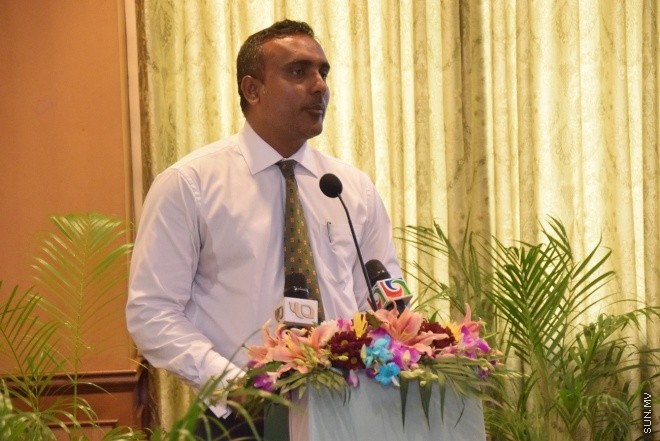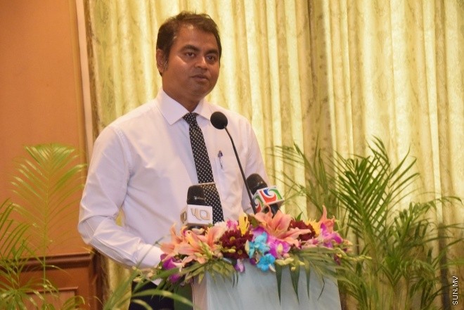 މިއަދުގެ ރަސްމިއްޔާތުގައި މިނިސްޓަރު ޓާރިގް ވާހަކަ ދައްކަވަނީ ---- ސަން ފޮޓޯ/ އަހުމަދު ޝަރުވާން