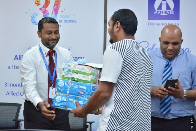 އެލައިޑް އިންޝުއަރެންސް ކުންފުންޏަށް 31 އަހަރު ފުރުނު އަހަރީ ދުވަސް ފާހަނގަކުރުމުގެ ގޮތުން ކުންފުނީގެ އަހަރީ ދުވަހު އުފަންވި ހުރިހާ ކުދިންނަށް އެކުންފުނިން އިންޝްއަރެންސް ޕްލޭނެއް ދިނުމުގެ ރަސްމިއްޔާތިގެ ތެރެއިން -- ސަން ފޮޓޯ: ފަޔާޒު މޫސާ