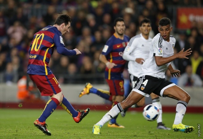 ސްޕެނިޝް ކަޕްގައި ބާސާ އާއި ވެލެންސިއާ ކުޅުނު މެޗުގައި މެސީ ބޯޅަ ކުރިއަށް ފޮނުވާލަނީ --- ފޮޓޯ: އޭޕީ