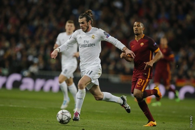ޔުއެފާ ޗެމްޕިއަންސް ލީގްގައި ރޭ ރެއާލް މެޑްރިޑް އާއި ރޯމާ ބައްދަލުކުރި މެޗުގައި ބޭލް ބޯޅަ ހިފައިގެން ދަނީ --- ފޮޓޯ: އޭޕީ