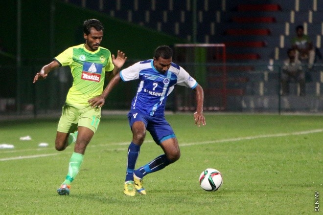 މިއަހަރުގެ ފުޓްބޯޅަ ސީޒަން ހުޅުވުމުގެ ގޮތުން ނިއު އާއި މާޒިޔާ ކުޅުނު ޗެރިޓީ ޝިލްޑް މެޗުގެ ތެރެއިން: އެ މެޗުން މާޒިޔާ މޮޅުވީ 1-0 ލަނޑުން --- ސަން ފޮޓޯ/ ފަޔާޒް މޫސާ