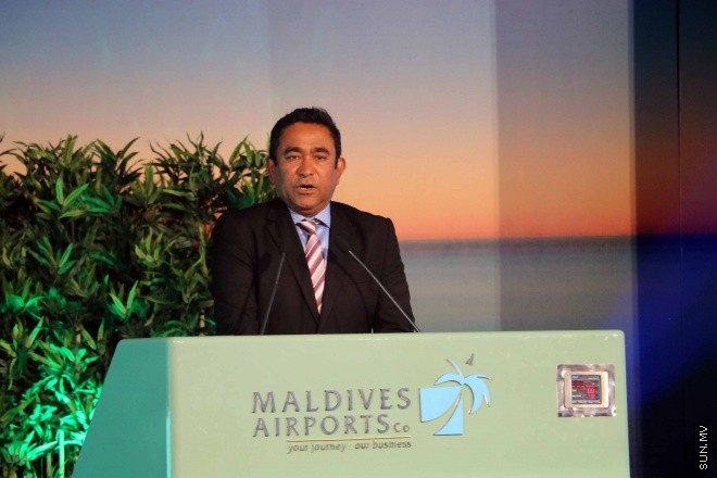 "މި ޒަމާނުގެ އިގްތިސާދުގެ މޮޑެލެއްގެ ގޮތަށް އަޅުގަނޑުމެން ދަސްކޮށްފައި ހުންނަ ފިލާވަޅުތަކުން މި ފެންނަނީ ސިންގަޕޫރު. އެހެންވީމަ ސިންގަޕޫރުގެ ވާހަކަ މިރޭ ވެސް މި ދައްކަނީ. ސިންގަޕޫރުގެ ވާހަކަ ދައްކާއިރު ތިން ވަނަ ޓާމިނަލް ނިމިގެން، ހަތަރު ވަނަ ޓާމިނަލް ކުރިއަށް އޮތް ދެތިން މަހެއްގެ ތެރޭގައި ފެށިގެންދާނެ. އަބަދުވެސް އެ މީހުންގެ ވިސްނުން މި ހުންނަނީ 20 އަަހަރަށް. އެއާޕޯޓަކީ އެ މީހުންގެ އިގްތިސާދުގައި އެންމެ ވަރުގަދަ ބިނާ ކަމުގައި އެ މީހުން ދެކިގެން މަސައްކަތް ކުރަނީ،" ރައީސް ޔާމީން ވިދާޅުވި އެވެ.