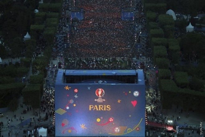 ޔޫރޯގެ މެޗުތައް ވަގުތުން ދެއްކުމަށް ފްރާންސްގެ އައިފްލް ޓަވަރު ސަރަހައްދުގައި ހަދާފައިވާ ފޭން ޒޯނެއް -- ފޮޓޯ: އޭޕީ