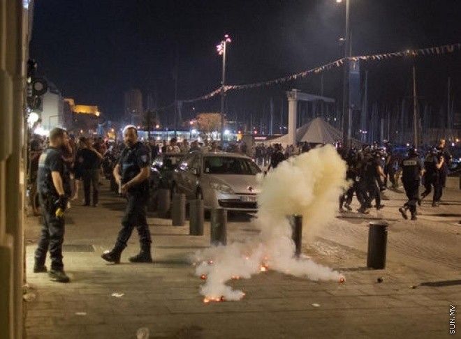 ފްރާންސްގެ މާސޭގެ ޑައުންޓައުންގައި ފުޓްބޯޅަ ފޭނުން އެއްވެފައިވާ ސަރަހައްދަކަށް ފުލުހުން ޓިއަގޭސް ޖަހާފައި -- ފޮޓޯ: އޭޕީ